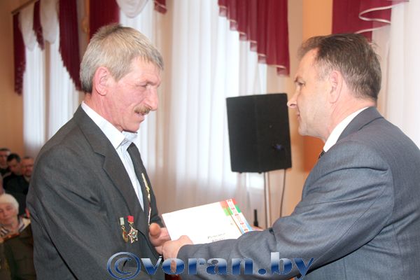 Все воины-интернационалисты района были торжественно награждены нагрудными знаками «20 лет образования ОО «Белорусский союз ветеранов войны в Афганистане». Начальник РОЧС С.В. Соломевич вручил юбилейную медаль, учрежденную в связи с 160-летием пожарной службы Беларуси, бывшему сотруднику пожарной службы района В.И. Михалькевичу, который верой и правдой служил и на гражданке. Объявлены Благодарности председателя районного исполнительного комитета и вручены Благодарственные письма районного Совета депутатов самым активным членам районной организации ОО «Белорусский союз ветеранов войны в Афганистане»: В.И. Адамицкому, Т.Ч. Гирдиевскому, В.С. Юхнюку, Ю.Ч. Ромейко, Г.Ч. Юзвику, В.В. Лукашевичу.
