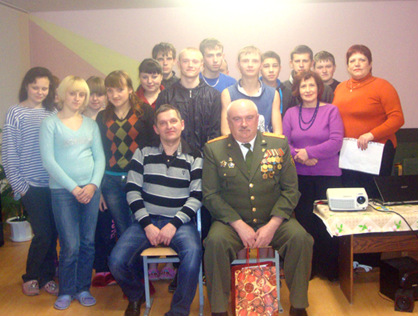 12 февраля в общежитии Вороновского колледжа состоялась встреча учащихся с воином-афганцем, майором запаса ВВС Станиславом Зигмундовичем Дайлидко, которую организовали воспитатели Н.П. Мисюк, А.Б. Савич и М.М. Адамонис. Ребята читали стихи о боях, о солдатах, погибших в Афгане. Минутой молчания почтили их память. Станислав Зигмундович рассказал учащимся, каковы были причины той ужасной войны, о народе Афганистана, о ходе боевых действий, своих наградах. Выступление перешло в непринужденную беседу — ребята задали много вопросов. С интересом присутствующие посмотрели отрывок из документального фильма «Афганское братство» телекомпании «Гродно». Затем слово взял наш поэт и композитор Дмитрий Иванович Лялько, который рассказал о своей службе в Нагорном Карабахе и исполнил под гитару песни о войне и боевых друзьях. Горячими аплодисментами ребята провожали своих гостей.