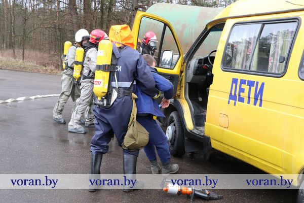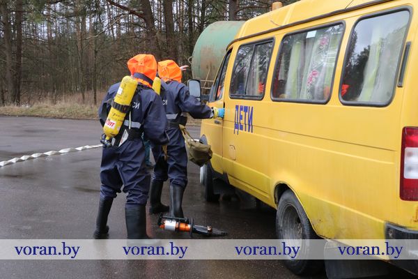 На участке автодороги Вороново-Бастуны — дорожно-транспортное происшествие. Автоцистерна, перевозящая аммиак, столкнулась со школьным автобусом. Из поврежденной цистерны вытекает содержимое…