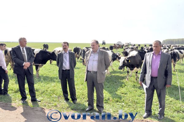 Место проведения мероприятия (РУСП с-з «Вороновский») было выбрано неслучайно. В хозяйстве не первый год уделяют особое внимание пастбищам. Более половины из них соответствуют современным требованиям: многокомпонентные, урожайные, ухоженные. Для правильного и длительного использования своевременно подкармливаются и подкашиваются, животноводы грамотно устанавливают скотопрогоны, осуществляют выпас скота с использованием фронтального метода стравливания. В этом убедились участники семинара, побывав на пастбищах молочно-товарных ферм «Переганцы» и «Клеткеники», где директор сельхозпредприятия В.М. Савосько и его заместитель по животноводству В.И. Красовский подробно рассказали присутствующим об эффективности стравливания пастбищ при использовании скотопрогонов и необходимой атрибутики при содержании скота на выпасе.