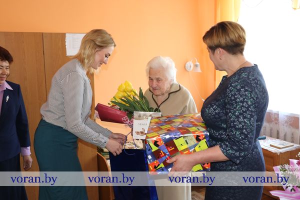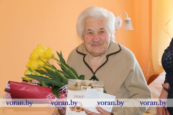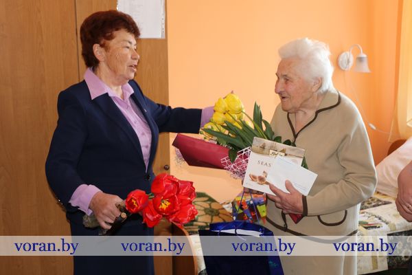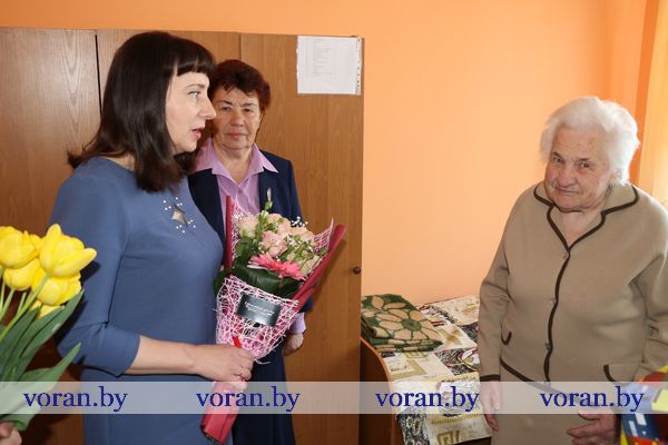 В двери к ветерану Великой Отечественной войны, участнице обороны Москвы Вере Филипповне Тимофеевой сегодня постучались многочисленные гости. В мае эта сильная, мужественная, трудолюбивая женщина празднует не только День Победы, но и отмечает день рождения. Нынешней весной — 96-й. Подарки, букеты, сладости и много теплых слов привезли в отделение круглосуточного пребывания для граждан пожилого возраста и инвалидов в Бастунах руководители и лидеры общественных организаций нашего района. Искренними и душевными были пожелания заместителя председателя райисполкома Галины Шарко, председателя Бастунского сельсовета Светланы Немеро, начальника отдела образования райисполкома Валентины Люленко, председателя райкома профсоюза работников образования и науки Ирины Зубель, председателей районной организации ОО « Белорусский фонд мира» Зофии Вильбик и районного совета ветеранов Нелли Пушненковой, первого секретаря РК ОО «БРСМ» Натальи Метелицы.