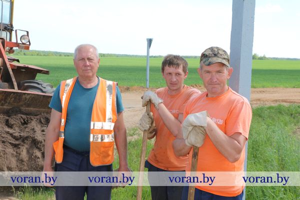 — Устроено гравийное основание, положены два слоя асфальтобетона. Сейчас производится отсыпка берм под знаки, замена знаков, промывка труб…— вкратце посвящает в производственный процесс Василий Иванович. — Придерживаться установленных сроков и качественно выполнять работу позволяет добросовестное отношение к делу всей команды: машиниста погрузчика Ивана Кулевича, машинистов асфальтоукладчика Иосифа Тышкевича и Виктора Волынца, машинистов катков Геннадия Велигора, Здислава Стенчика и Ивана Юрго, асфальтобетонщиков Ивана Маселя, Алексея Прокоповича, водителя автобуса Чеслава Маселя и других моих коллег.