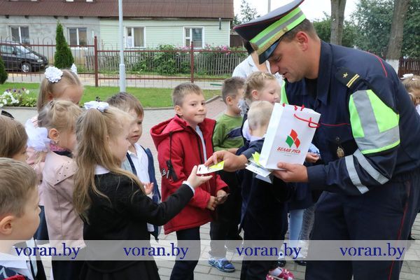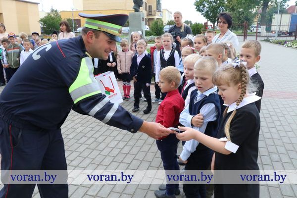 Сегодня в рамках Единого дня безопасности первоклассники Вороновской школы встретились со старшим инспектором ГАИ Вороновского РОВД Александром Стефановичем и председателем Вороновской районной организации РОО «Белая Русь» Олегом Тарасовым. Инспектор ГАИ рассказал о правилах поведения пешеходов на дорогах, о передвижении по городу на велосипеде и самокате. В завершение гости раздали школьникам фликеры.