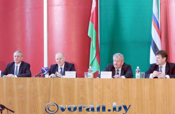 25 сентября прошла очередная пресс-конференция председателя Гродненского облисполкома Владимира Кравцова. Местом встречи руководителя области с представителями региональных и республиканских СМИ стал один из самых экономически развитых регионов Принеманья — Сморгонский. До недавнего времени возглавлял регион наш земляк, нынешний мэр Гродно Мечислав Гой. Под его руководством на Сморгонщине произошло немало позитивных перемен, широкое развитие получила промышленность, социально-культурная сфера. Сегодня в районе действуют 14 крупных организаций, более 450 малых и средних предприятий, которые выпускают более 200 видов товаров. На Сморгонщине реализуются 16 инвестиционных проектов, налажено экономическое сотрудничество с 40 странами мира. Журналисты с интересом познакомились со спецификой работы цеха сухих молочных смесей ОАО «Сморгонские молочные продукты», где кроме традиционной продукции выпускают и вкуснейшее мороженое. Побывали на РУП «Сморгонский агрегатный завод», мини-тракторы которого пользуются спросом не только в Беларуси, но и далеко за ее пределами. И даже попали в настоящий «сельскохозяйственный супермаркет» — ООО «Белагротерминал»! Иностранная группа компаний возводит в Сморгони уникальный для республики проект — крупнейший транспортно-логистический и разгрузочно-погрузочный узел для перевалки зерна, круп и другой сельскохозяйственной продукции. Уже готова первая очередь.