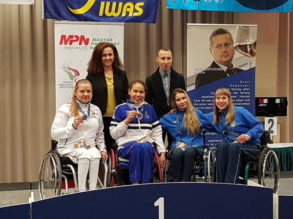С 16 по 19 февраля в Венгрии проходил этап Кубка мира по фехтованию на инвалидных колясках. Наша землячка из Бастун Алеся Мокрицкая (на снимке первая слева) также принимала в нем участие. Завоевала серебро в соревнованиях на шпаге, уступив золото тайландке со счетом 15:9. Всего одного балла (15:14) не хватило Алесе до серебра в поединке на рапире, у нее — бронза.