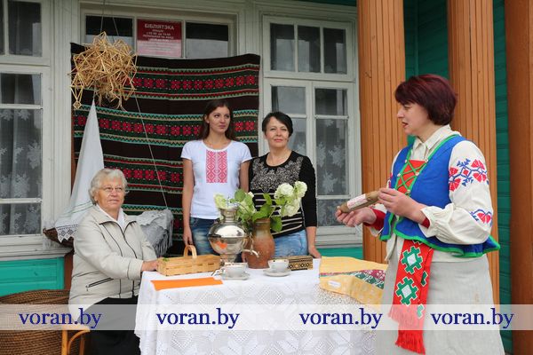 Цікавая гутарка і гарбатка з самавара сагрэлі ўдзельнікаў мерапрыемства. Пазнаёміцца з экспанатамі экспазіцыі, якую падрыхтавалі загадчыца бібліятэкай Валянціна Квецень і яе супрацоўніца Раса Лісецкая, можна на працягу дня на цэнтральнай вуліцы аграгарадка.