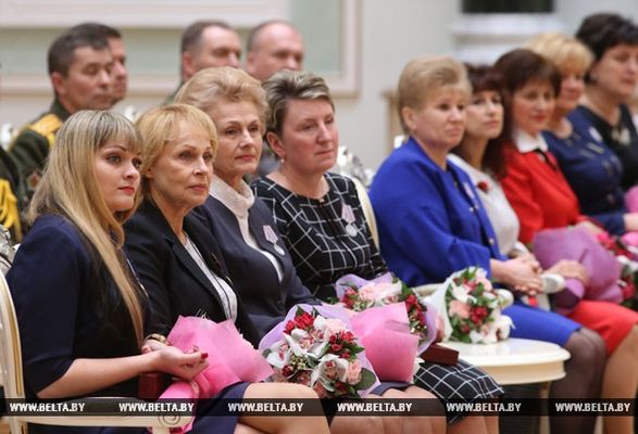 Слова особой признательности и глубокого уважения Александр Лукашенко адресовал многодетным матерям. "Недаром древние говорили, что ключи от судеб народов находятся в руках матерей, - отметил он. - Многие из присутствующих в этом зале женщин совмещают воспитание детей, профессиональную и общественную деятельность. Вы достойны искреннего восхищения за то, что умеете строить яркую, насыщенную событиями жизнь, где находится место для работы, семьи, культурного досуга, спорта. В вашем лице мы поздравляем сегодня всех белорусских женщин".