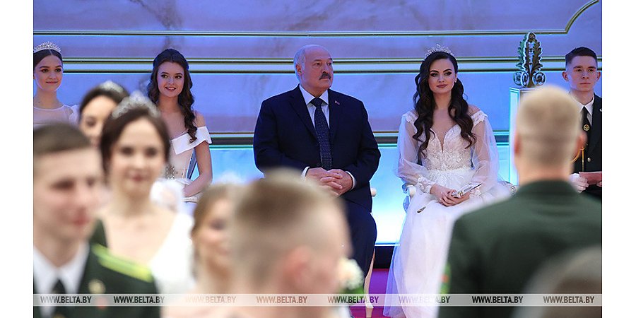 "Дорогие друзья! Сегодня Дворец Независимости принадлежит вам. Не раз говорил и повторю, что он открыт для всех, кто стремится честно и добросовестно служить своему Отечеству и своему народу", - обратился Александр Лукашенко к участникам бала.