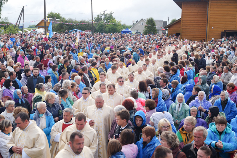 З гаміліяй да прысутных звярнуўся біскуп Антоні Дзям’янка. Іерарх адзначыў, што дзеля Маці Божай вернікі “адважыліся ісці ў пілігрымку, пераадольваючы стому, спякоту, адлегласць у дзясяткі і сотні кіламетраў”. “Вы, дарагія пілігрымы, выказалі любоў да Маці Божай і давер да Яе, ахвяруючы свае летнія дні дзеля Яе хвалы”, - дадаў пінскі ардынарый.