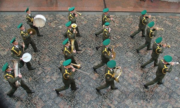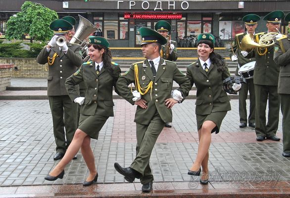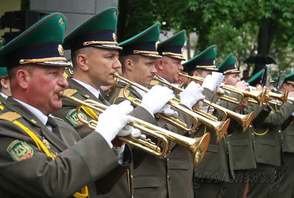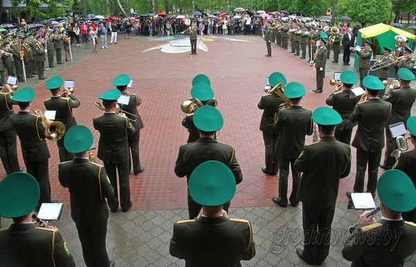 В субботу, 14 мая, на Советской площади собрались 8 военных оркестров пограничных групп и пограничных отрядов органов пограничной службы Республики Беларусь, а также Ансамбль пограничной службы Беларуси.