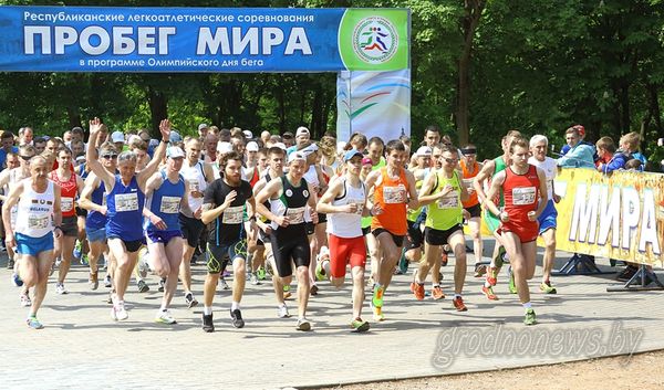 В Гродно в Коложском парке в очередной раз прошли республиканские легкоатлетические соревнования «Пробег Мира» в программе олимпийского дня бега. На старт трех дистанций (10 км, 4 км и 2 км) вышло более четырехсот бегунов не только из Гродненской, но и других областей Беларуси. Зарубежные спортсмены были представлены командой польских бегунов из Белостока.