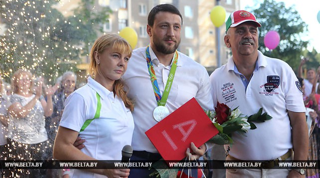 В яркое шоу превратили встречу серебряного призера Игр в Рио Ивана Тихона его соседи по дому и двору, передает корреспондент БЕЛТА. Ивана Тихона в родном дворе в Гродно встречали цыганскими песнями и обливали шампанским. По заведенной еще в начале 2000-х годов традиции, в родном дворе в жилом районе Фолюш после каждого успешного топ-турнира молотобойца встречают всем миром. На сей раз поздравить Тихона пришло более двух сотен человек.