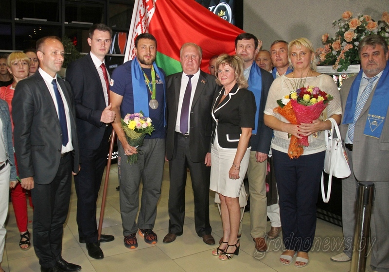 Представительная делегация встречала серебряного призера Олимпийских игр – 2016 Ивана Тихона в национальном аэропорту Минск.