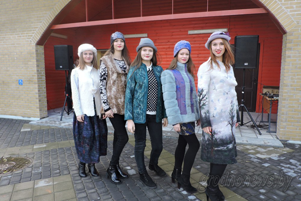 Участники самого теплого фестиваля дефилировали во дворике Центра ремесел «Наследие» в элегантных шляпках, невероятной расцветки пальто. Именно с модного показа начался Шерстиваль, который в Гродно прошел уже во второй раз.