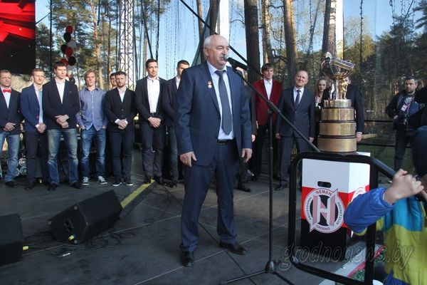 - Прошедший сезон был самым успешным для наших хоккеистов, - отметил Владимир Васильевич. – Они стали обладателями Кубка Салея, чемпионами страны и завоевали Кубок Президента Республики Беларусь. Это дает им право выступить в Лиге Чемпионов, что обещает всем нам много новых положительных эмоций. Весь сезон мы наслаждались серьезной, интересной и увлекательной игрой «Немана». И он по праву стал чемпионом! Хочется поблагодарить хоккеистов и их наставников, а также всех болельщиков, которые поддерживали наш «Неман» и верили в его победу.