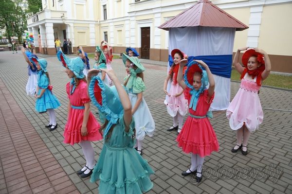 Уникальный объект появился у здания театра кукол и останется здесь и после праздника. Каждый день 12 фигурок-кукол в национальных костюмах будут кружиться в танце под музыку и станут для гродненцев и туристов круглогодичным символом-напоминанием о многонациональном празднике.