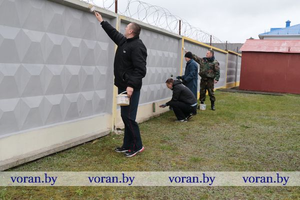 У сотрудников Департамента охраны также было много работы: покраска забора, наведение порядка в гаражах.
