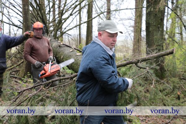 Большое внимание сегодня было уделено и объектам историко-культурного значения, среди которых известное во многих странах мира урочище «Гаек», что находится на территории государственного сельхозпредприятия «Элит-Агро Больтиники». Благоустраивали это место, где когда-то бывал поэт, сын белорусского и польского народов Адам Мицкевич, приехали сотрудники государственных учреждений — райисполкома, райсовета депутатов, налоговой инспекции, райкома профсоюза работников АПК. И хотя здесь постоянно поддерживается порядок, но и сегодня работы для 15 человек было предостаточно. Надо было убрать упавшую ель, опавшую листву, сухие ветки…