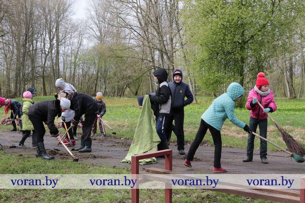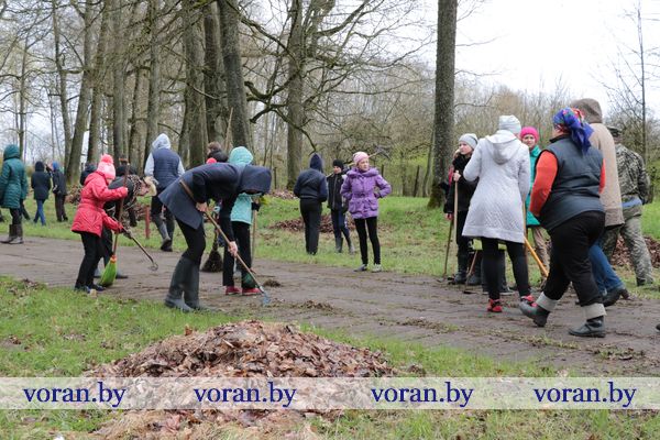 Отрадно отметить, что на сегодняшний субботник вышли люди разных профессий, не только взрослые, но и дети. Например, в агрогородке Погородно учителя и учащиеся местной школы с 4 по 11класс дружно поработали на территории парка конца 18 столетия: подгребли листву, собрали сухие ветки, подмели ведущую к живописному водоему дорожку. Кстати, в ходе акции «Чистый водоем» это рукотворное озеро было очищено, на территории парка было высажено около 100 елей, благоустроена беседка, обновлен мостик…