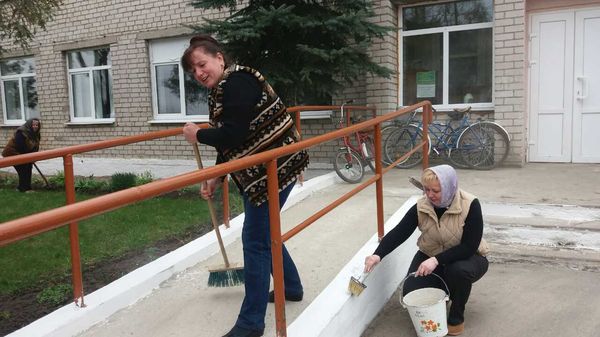 С хорошим настроением, хотя погода и не очень благоприятствовала, вышли вороновчане на субботник и сегодня. Уже с девяти часов утра, например, наводили красоту около Вороновской школы искусств.