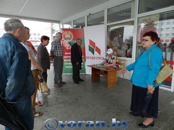 В Вороново о начале процесса выдвижения кандидатов в депутаты люди узнали от пикетирующих возле магазина «Родны кут» на центральной площади. Покупатели супермаркета подходили, останавливались, интересовались, некоторые были готовы поставить свои автографы в поддержку выдвижения в кандидаты А.И. Маркевича. И делали это с большим удовольствием. Слух о том, что в райцентре проходит пикет по сбору подписей за выдвиженцев в Парламент, разлетелся по поселку быстро. И уже буквально через 10-15 минут возле пикетирующих собрались те, кто всегда на передовой — наши ветераны труда и активная молодежь. Члены инициативной группы по выдвижению в кандидаты в депутаты Палаты представителей Национального собрания Республики Беларусь шестого созыва под эгидой общественных объединений «БРСМ» и «Белая Русь» Анна Камыно и Людмила Салманович рассказывали о своем выдвиженце, а уж потом просили поставить за него свою подпись. За время пикета подписные листы пополнились 36 подписями. По мнению Анны и Людмилы, намного эффективнее все же поквартирные обходы, а пикеты нужны, скорее, для знакомства людей с претендентами на депутатство.