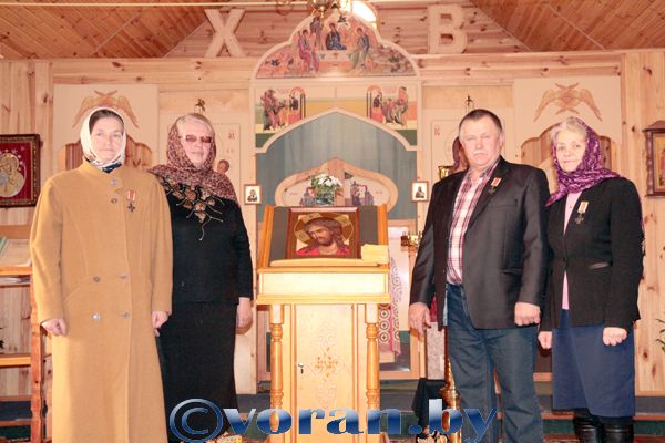 Трепетно ожидаемым, духовно обогатившим событием для прихожан церкви Святых мучеников Антония, Иоанна и Евстафия Виленских в агрогородке Заболоть стало освящение храма. Состоялось оно 29 марта. В этот день верующие небольшого прихода получили действительно хороший подарок к Светлому празднику Пасхи. Православных в Заболоти немного, около 80 человек. Но они дружно работали, приближая этот знаковый день, на проятежении трех лет своими руками перестраивали под храм старое здание, благоустраивали территорию, придавали дворику уютный вид.Вдвойне приятным и незабываемым оказалось это событие для людей, которые внесли свой посильный вклад в строительство храма. Жители Заболоти: фельдшер Заболотской амбулатории Екатерина Константиновна Плетежева, участковый терапевт Надежда Александровна Богдевич, инженер по снабжению местного хозяйства Анатолий Владимирович Хрищанович и учитель немецкого языка Наталья Петровна Дашкевич — после выхода на заслуженный отдых нашли себя в служении Богу. Они активно включились в жизнь прихода. На помощь в строительстве храма им, да и всем православным верующим, пришли жители Гродно — пенсионер Виктор Николаевич Романович и технолог ОАО «Дженти» Сергей Александрович Токарев. В торжественный день освящения храма приятным и неожиданным моментом стало для них получение награды за благое дело. Медали «Коложский крест» III степени были удостоены Е. Плетежева, Н. Богдевич, А. Хрищанович и В. Романович. Архиерейскую грамоту получили преподаватель воскресной школы Н. Дашкевич и С. Токарев.