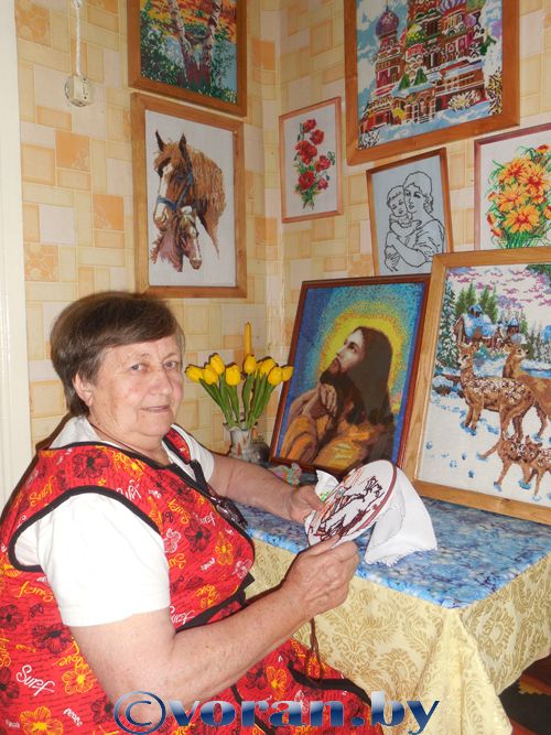 Любое хобби, где нужны фантазия и усердие, вызывает уважение. Когда смотришь на вышитые картины Янины Михайловны Корзун из д. Довгялы Погородненского сельсовета, представляешь, сколько времени и сил нужно потратить, чтобы получился такой красочный сюжет, а герои картин выглядели реалистично. Переступаешь порог дома женщины и будто в художественный музей попадаешь. Вышивки крестиком создают настоящее царство пейзажей, натюрмортов, зверушек и птиц. Религиозная тематика занимает особое место. Глядя на кропотливо вышитые иконы, что думаешь о человеке, их создавшем? Наверно, что он имеет покой в душе. Впрочем, и то, что прошел долгий путь и, наверное, не самый легкий.