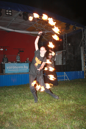 В прошедшую субботу состоялась грандиозная дискотека под открытым небом Open Air (в переводе — «открытый воздух»). Такого еще стадион Вороновского колледжа не видывал: мощный звук, шикарная светотехника и множество молодых людей, готовых танцевать до утра.Веселый и заводной ведущий MC Bandik, вороновские DJ Martin и DJ BY’Trim открыли дискотеку на свежем воздухе. Затем на сцене появился уже знакомый нашей молодежной среде DJ Greeb. Его миксы не оставили равнодушными никого. Репертуар, предложенный минским ди-джеем, включал в себя электронную музыку различных стилей. Приглашенные на мероприятие лидские «укротители огня» творили просто чудеса… Казалось, во время проведения огненного шоу все вокруг замерли, и только громкие овации взрывали тишину. Создавалось такое впечатление, что не люди боятся огня, а он их — словно покорный дрессированный зверь делал все, что ему велят. После огненной феерии на сцене появилась любимица вороновской молодежи — группа «RIP Legion». Ее выступление прошло просто на «ура», а всем известную песню «Дождь», которую вместе с группой исполняет Евгений Комар (наш сотрудник — прим. авт.), пел весь стадион. Многие из тех, кто пришел на этот ночной праздник, ожидали выхода на сцену единственной белорусской брейбит леди DJ Olly Hare. Девушка продемонстрировала свое мастерство ди-джея, хотя, по мнению молодежи, наши доморощенные DJ Martin и DJ BY’Trim мало чем ей уступают.
