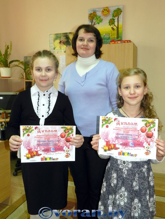 Очень хотелось Гражине Витольдовне, чтобы эту красоту увидели и другие. Она нашла на просторах интернета интересный конкурс рисунков и поделок новогодней тематики. Пять работ отправили для участия в III Международном конкурсе рисунков и поделок «Новый год — любимый праздник!», проводимый в Москве. На суд международного жюри отправились рисунки Ирины Наркевич, Насти Септилко и Даши Маркель, а также две поделки «Дед Мороз» Ксении Стома и «Снеговик» Ксении Дорняк.
