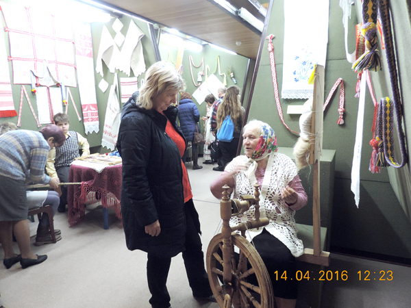Затым за справу ўзяліся народныя ўмельцы, якія падзяліліся сакрэтамі свайго майстэрства. “Спяваў” калаўротак у руках Гэлены Янаўны Гры-гілевіч, калі яна дэманстравала, як прадзецца шэрсць. Ядвіга Людвікаўна Коўза і Станіслава Вікенц’еўна Міхна прапаноўвалі гасцям павучыцца ткацкай справе. Прысутныя на свяце з задавальненнем садзіліся за ткацкі станок. Маўляў, калі ж яшчэ выдасца такая цудоўная магчымасць! А далучыццца да гэтага старажытнага майстэрства і адчуць непарыўную повязь са сваімі продкамі мелі магчымасць усе прысутныя.