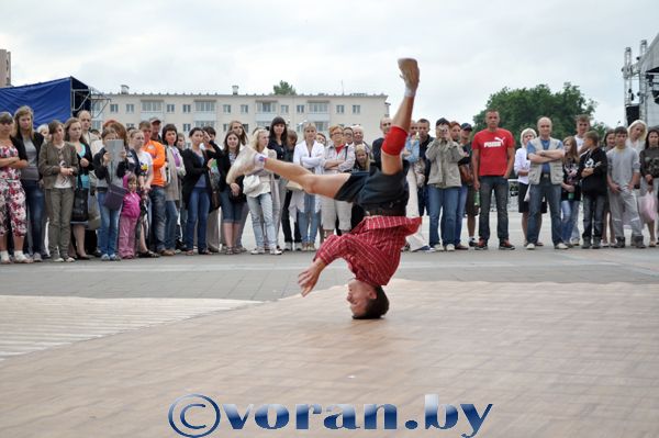 В День культуры Беларуси (14 июля) главная площадь областного центра была отдана представителям молодежной культуры. Здесь происходило центральное событие фестиваля — конкурс молодых исполнителей. Чтобы максимально полно представить свои инициативы и субкультуры, на площади Победы собрались около полутысячи юношей и девушек, приехавших не только из областных центров, Минска, но и небольших населенных пунктов. Так, здесь можно было получить мастер-класс от художников граффити и боди-арта, исполнителей битбокса, танцоров брейк-данса, локинга, хауса, джаз-франка и других современных молодежных направлений. Головокружительные трюки и виртуозную технику исполнения продемонстрировали любители экстремальных видов спорта: велотриалисты и роллеры, скейтбордисты и трейсеры. Желающие посетили выставку мотоциклов, организованную общественным объединением мотоклуб “Псы дорог”, а самые отважные оседлали “железных коней” и прокатились по улицам города. Те, кто не вписывался в формат фестивальной сцены, свои таланты демонстрировали на импровизированных сценах на главной площади. Самородки со всех уголков Беларуси показывали свои умения на танцполах и велосипедах.
