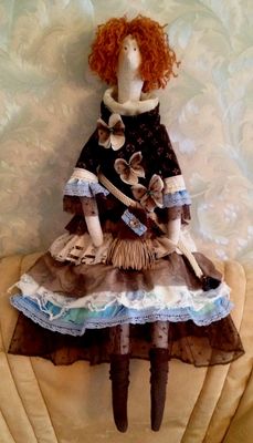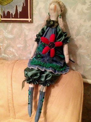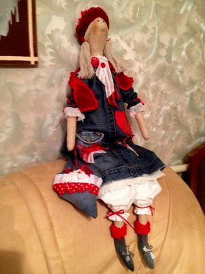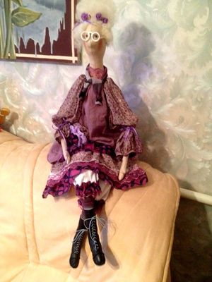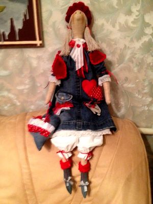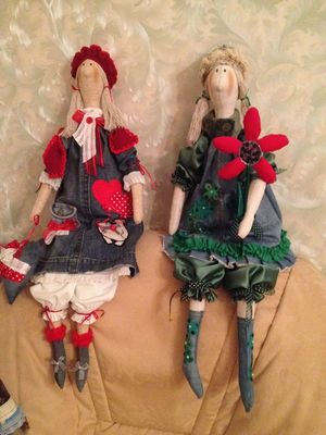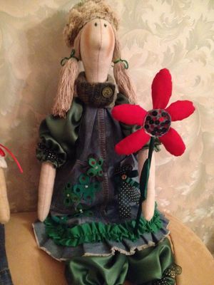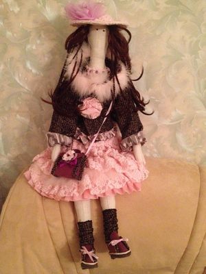 В поисках материалов для первой куклы ей пришлось «перевернуть» чердак родительского дома, где она нашла много старых добротных вещей, которые уже давно вышли из моды. Отыскались дома и разные красивые пуговки, ленточки, броши… Работа пошла. Готовая кукла понравилась дочерям, пришлась по вкусу и подругам. Это только утвердило Валентину в выборе увлечения.