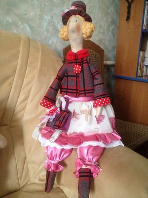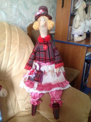 — Дочери выросли, сейчас одна работает, а вторая учится в Гродно. Муж, водитель-международник, часто неделями не бывает дома, — рассказывает Валентина. — В прошлом году у меня отпуск был зимой. Переделав все домашние дела, стала искать себе новое творческое занятие. Просматривая интернет-странички, заинтересовалась фото сшитых тканевых кукол. Оказалось, они называются Тильды. Эти «милые барышни» меня просто заворожили. Сшить такую куклу, на первый взгляд, показалось несложно. Но сейчас я понимаю, что это не так. Да, выкроек и схем в интернет-сети множество, но одно дело — сшить куклу, а совсем другое — нарядить ее.