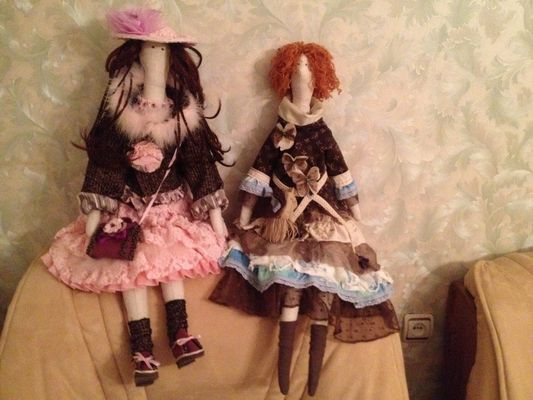 — Вообще, такие куклы отличаются большим разнообразием. Это могут быть девушки-барышни, ангелочки, зверушки — собачки, кролики, мыши и другие животные, — рассказывает В. Короляк. — Больше всего мне нравится придумывать для них одежду, особенно для барышень: воланчики, оборочки, кружева, бусинки и т.п. Сейчас я для них придумала обувь в технике папье-маше.