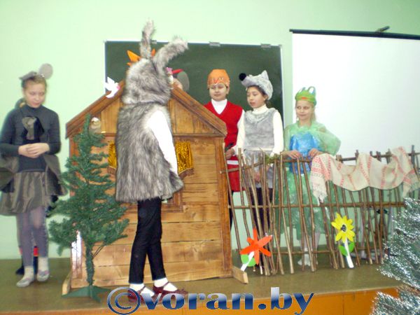 10 января в Вороновской СШ прошел районный конкурс театрализованных представлений на иностранном языке, организованный отделом образования. Первая проба такой деятельности стала настоящим праздником. В конкурсе приняли участие ученические коллективы 3-11 классов школ района. Английская и немецкая речь, символичные декорации и разнообразные костюмы создали неповторимую атмосферу культур стран изучаемых языков. Казалось, герои многих известных сказок собрались здесь: Золушка, Бременские музыканты, Красная Шапочка, Винни-Пух и др. Некоторые сказки получили совсем неожиданную, новую интерпретацию.