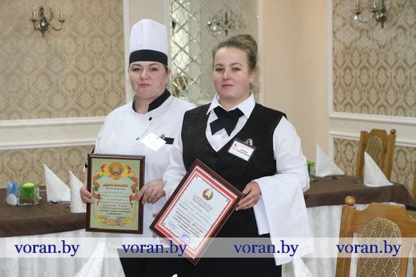 26-27 октября в Ошмянах проходил областной конкурс профессионального мастерства среди поваров, кондитеров и официантов общественного питания. Работники вороновского ресторана «Сустрэча» участвовали в нем впервые. И очень успешно — вернулись призерами. Повар Юлия Ясюкайть с дипломом за 2-е место, официант Наталья Шолохова — за 3-е. Конкурс дал им возможность не только проявить себя, но и повысить уровень мастерства. А напитки и блюда наших конкурсанток, заслужившие высокую оценку жюри, могут разнообразить меню ресторана.