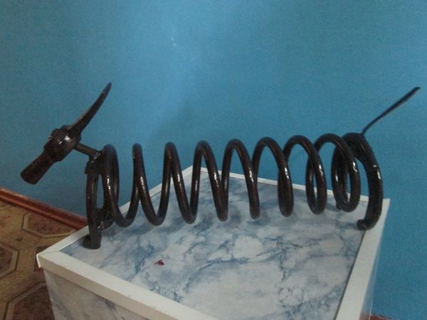 Вне конкуренции оказался символ 2018 года в этой номинации — такса из амортизационной пружины с ногами-подковами и головой-молотком. Символ наступающего года собаки смастерили учитель технического труда Клайшанской базовой школы Г.А. Вороновский и девятиклассник Александр Добринский.