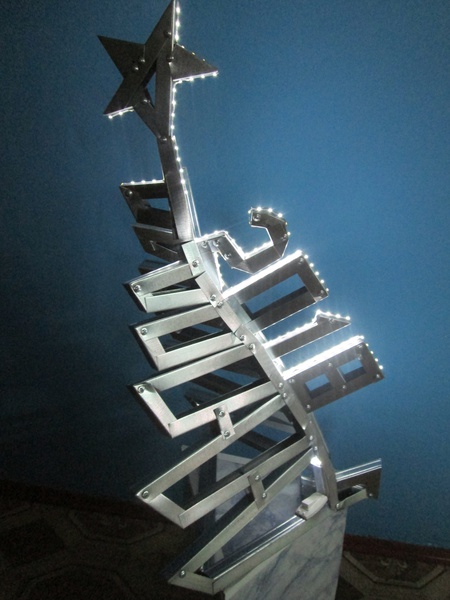 Который год участники конкурса «Техно-Елка» доказывают, что у технических вещей — воздушных фильтров тракторов, компьютерных дисков, корпусов мобильных телефонов, металлопрофиля, гаек, туб от ниток, пробок, крышек, ключей — есть вторая жизнь. Из них получаются креативные «Королевы технобала», «Стальные леди», «ТехноМистерии», «Елки со вкусом Италии», «KinderЕлки», «DogЕлки» и т.д. В этот раз учащиеся школ, воспитанники детских садов в соавторстве с педагогами представили на районный этап конкурса 20 работ. Конечно же, хозяева конкурсной площадки — ЦТДиМ — также активно в нем поучаствовали. Каждая поделка — это не только плод фантазии и творчества, но и кропотливой работы авторов. Для того чтобы воплотить идеи приходилось красить, пилить, сваривать, прибивать. Поэтому лесные красавицы и композиции из грубых материалов получились весьма оригинальными. Более того, некоторые конкурсанты-конструкторы усовершенствовали свои поделки подсветкой и музыкальным механизмом.