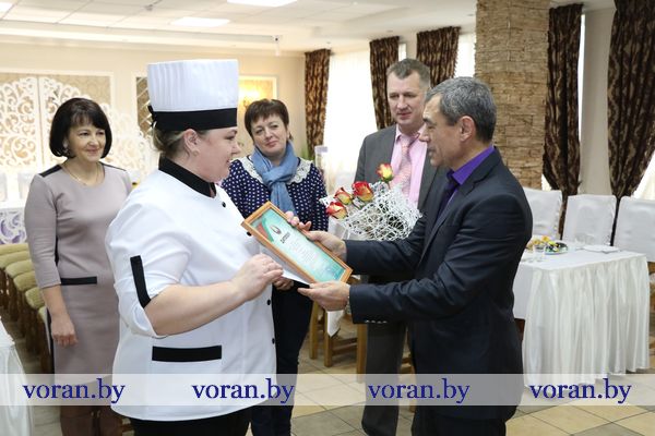 Ежегодно Белорусский профсоюз работников потребительской кооперации проводит конкурс среди поваров общественного питания, обеспечивающих горячим питанием механизаторов в период уборки урожая. Победителем в этом году стала повар четвертого разряда ресторана «Сустрэча» г.п. Вороново Юлия Ясюкайть. К 80 труженикам КСУП «Трокельский» и «Рассвет-агро» во время уборочно-посевной кампании приготовленные ею ароматные и вкусные обеды «приезжали» горячими в поле. Диплом и денежную премию повару вручил сегодня председатель Гродненского областного комитета профсоюза работников потребкооперации Анатолий Пукач.