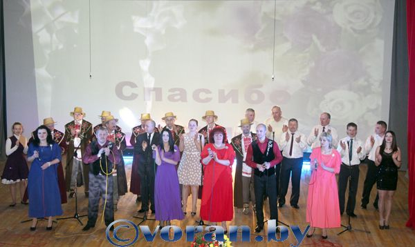 Именно их и взяли за основу организаторы концертной программы — и не ошиблись. Словно машина времени перенесла всех присутствующих на десятилетия назад, и под звуки радиостанции «Маяк» на сцене появились ведущие: Евгений Комар в строгом костюме и Валентина Вашкевич в платьице в горошек, модном в те годы. Еще мгновение — и по залу разлились звуки вальса в исполнении народного духового оркестра под управлением Николая Шманка. Живым истоком народной музыки и песни по праву на Вороновщине считаются «Лявоны» (худ. руководитель Вячеслав Мацкевич). Под их выступление ноги сами в пляс шли, а на большом экране то и дело мелькали кадры кинохроники, где совсем еще молодые и даже юные участники коллектива покоряют центральное телевидение, гастролируют по заморским странам. А уж когда запели «Цветные сны» (худ. руководитель Наталья Вашкевич), оживилась публика среднего возраста, ведь еще живы в памяти песни «Платьице в горошек», «Арго», «Лето». Зал дружно подпевал и солистам Наталье Вашкевич, Анастасии Куель, Татьяне Гулевской, Светлане Комар, Андрею Лавриновичу, и детской вокальной группе «Забава», исполнившей чудесную песенку из кинофильма «Кавказская пленница». Выступление хореографического коллектива детской школы искусств «Ровесник» с рок-н-роллом просто взорвало зал.