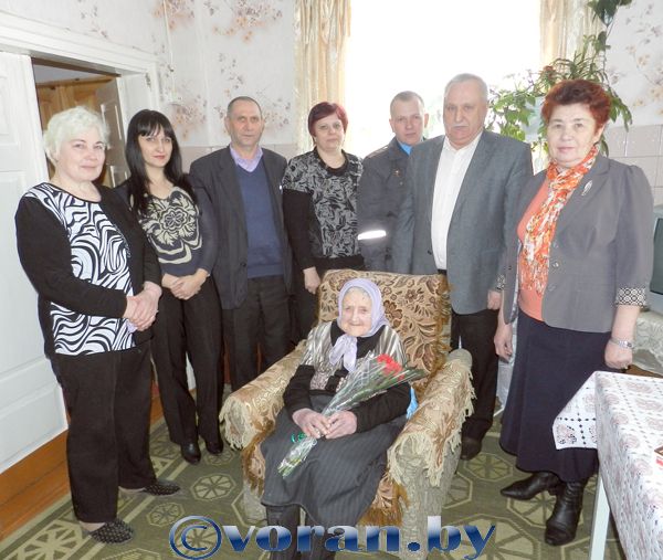 На Вороновщине проживают 2 человека, которые уже отпраздновали свой столетний юбилей. 17 марта ряды долгожителей пополнила жительница д. Довгялы Я.В. Банулевич. В столь знаменательный для этой женщины и для ее родных день в доме было много гостей. Приехали поздравить Ядвигу Викентьевну с юбилеем, пожелать ей доброго здоровья и вручить подарки заместитель председателя Вороновского райисполкома М.И. Уляшко, председатель районного совета ветеранов Н.К. Пушненкова, начальник отделения по гражданству и миграции РОВД, майор милиции С.В. Баенский, представитель управления по труду, занятости и социальной защите райисполкома М.И. Ошмяна, председатель Погородненского сельисполкома О.В. Синельникова и заместитель директора по идеологической работе КСУП э/б «Погородно» Г.И. Юранец. В этом хозяйстве, а ранее — колхозе «Дружба», именинница работала полеводом.