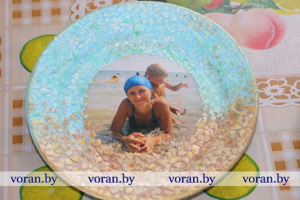 Пока задекорированной таким образом посудой хозяйка не сервирует стол, а украшает интерьер. Тарелки хранятся, дарятся как сувениры и рамочки с фотографиями, мини-картины. Рукодельница добавила к декупажу яичную скорлупу. Покрытая краской и лаком, она создает эффект растрескавшейся поверхности.