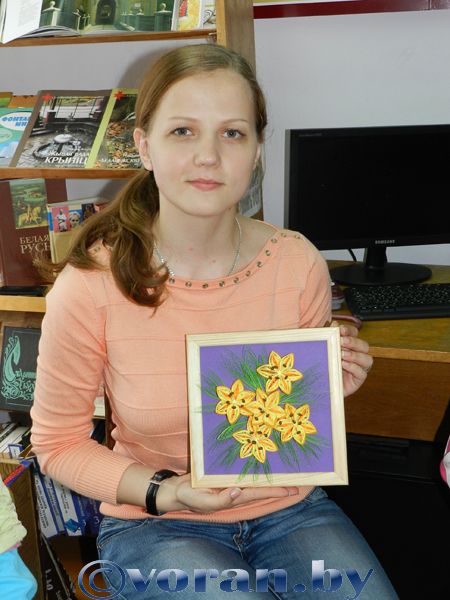 Увлек квилинг и жительницу агрогородка Переганцы Валентину Барановскую. Еще с детства у нее была тяга к рукоделию — она занималась бисероплетением, в частности, модными в то время «фенечками». Появившийся интернет дал возможность не только получать информацию о разного рода видах рукоделия, но и обучаться им посредством видеоуроков. Так Валентина и освоила новую для себя технику «квилинг». Бумагокручение настолько увлекло молодую женщину, что вскоре ее работы радовали глаз родных и близких и стали для них желанными подарками. Переганцевская рукодельница работает учителем обслуживающего труда в местной школе. Поэтому не удивительно, что этим искусством она увлекла и своих учениц. Сейчас Валентина Викторовна проводит мастер-классы для всех желающих, а помогает ей в этом заведующая сельской библиотекой Наталья Каминская, которая приглашает своих читателей не только приобщаться к книге, но и с пользой провести время.