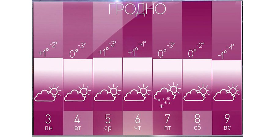 Метеорологические условия ближе к середине недели станет определять область высокого атмосферного давления. Во дворе будет в основном облачно с прояснениями. В большинстве районов значительных осадков не прогнозируется. Ветер умеренный, северной четверти. Влажность – до 80%. На дорогах местами гололедица, ожидается слабый гололед. В среду ночью -1°C… -7°C, в дневные часы около 0°C.