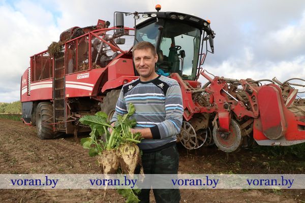 — На комбайне GRIMME REXOR-620 за день вырываю 10 гектаров, — рассуждает механизатор Александр Минкилевич (на снимке), — но могу и больше. Со временем не считаюсь, если надо, то и до часа ночи работаю. Урожай, сами видите, неплохой. Очень хочется, чтобы свекла не залеживалась на поле, а быстрее попала на переработку. Но на комбинате свои правила, установленный лимит поставок, к тому же и транспорт их задействован на отвозке. Полная зависимость от переработчика. А как быть производителю? Погода-то переменчива…