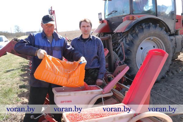С оптимизмом смотрит в будущее и Олег Булгак. Он уроженец деревни Мицканцы, студент Гродненского аграрного университета, ныне помогает на севе Леониду Дайлидко: