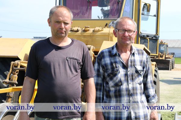 В день нашего приезда начали закладку траншеи и на ферме «Солтанишки». Первыми, с кем мы познакомились и ненадолго отвлекли от важного дела, были механизаторы на трамбовке Иван Кашлей и Петр Лыщик. Работали профессионально. И это неудивительно: у каждого за плечами многолетний трудовой стаж. Под стать им трудятся и их коллеги Евгений Вентис, Геннадий Бартось и Геннадий Лукашевич. Трамбовка идет в две смены: с 8 утра и до полуночи.