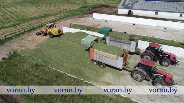 Многолетние люцерна и клевер уже убраны. Сейчас на торфяниках убираем злаковые. Если суммировать укос многолетних и злаковых трав, то с одного гектара собираем по 8-9 тонн. Неплохая урожайность. Думаю, что объем заготовленных кормов с первого укоса будет не меньше 17 тысяч тонн из 15 800 запланированных. Качественный сенаж уже заложен в траншеи на фермах «Гудинишки», «Лелянцы», «Липкунцы», «Заболоть», «Корговды».