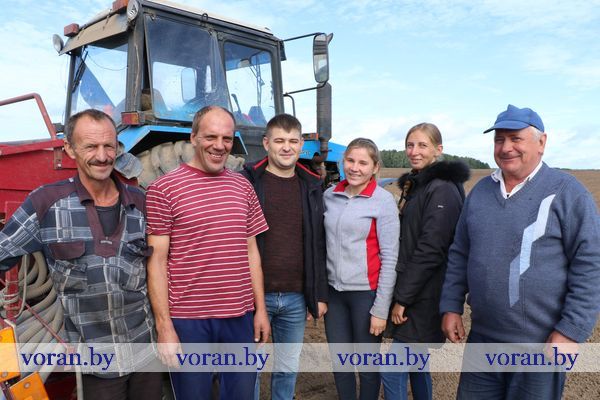 — Успешно в хозяйстве началась и уборка второго хлеба, — отметил по дороге на картофельное поле Александр Полубенко. — Уже выкопано 18 гектаров из 70. Хорошо помогают нам четыре группы студентов из Лидского колледжа и две бригады биржи труда г. Лида. Крупный картофель на продажу сразу затариваем в сетки, а средний и мелкий загружаем в прицепы и отправляем на сортировочный пункт картофелехранилища. Так как наше сельхозпредприятие семеноводческое, то семенной картофель будем поставлять в другие хозяйства, а мелкий — на ОАО «Рогозницкий крахмальный завод».
