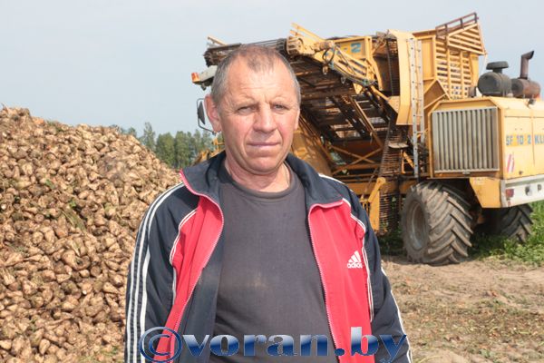 — До этого убирал зерновые культуры, намолотил более 1 300 тонн зерна, — рассказал Виктор Вацлавович. — А что касается свеклы, то это будет для меня уже 8-й уборочный сезон. По сравнению с прошлыми годами корнеплоды из-за дефицита влаги ныне не такие крупные. Но по урожайности наша больтишская свекла будет гораздо лучше, чем на полях Несвижского района (там она вообще мелкая), где недавно пришлось побывать. Теперь для меня главное, чтобы свеклоуборочный комбайн не подвел, все-таки в работе он уже немало лет.